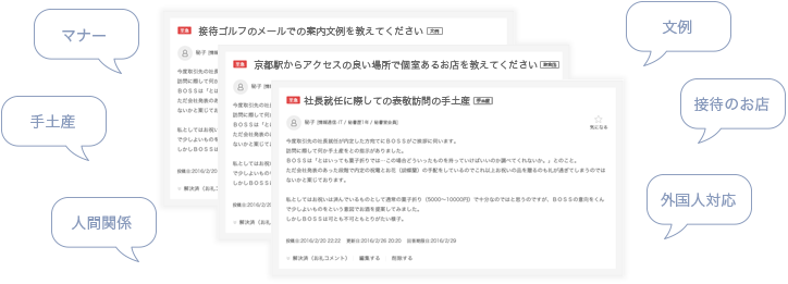困っていることに、ベテラン秘書たちがコメントを返信して悩みや疑問がすっきり。