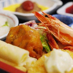 • 刺身・お子様ハンバーグ・オムレツ・揚物・焼物などにピラフやデザート・お椀も付いております。