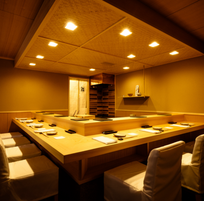 白金6丁目の住宅街に佇む、檜香るカウンター8席の隠れ家。都会の喧騒を忘れ、職人の手さばきを五感で愉しめる清廉な空間です。少人数での貸切利用も承っており、ご接待や記念日など、大切な方々とプライベートなひとときを。周囲を気にせず、江戸前鮨をお愉しみいただけます。