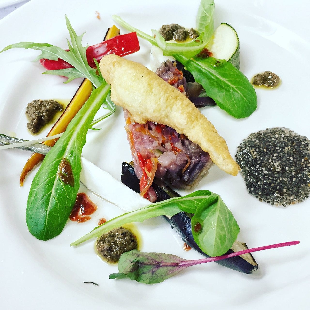 一皿目の前菜(一例:5種のじゃがいものパイ包み)