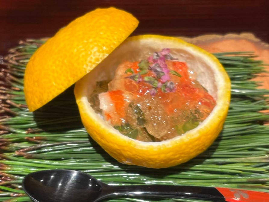 見た目にも涼しげな海鮮煮凝りと生蓴菜