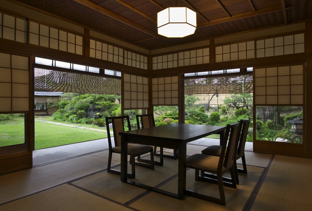 木のぬくもりを実感できる中部屋 ゲストを招いての接待、家族での食事に