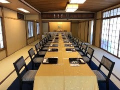 落ち着いた雰囲気での食事をはじめ、結婚披露宴や展示会場、講演や会議と、大人数での利用に最適な和風椅子式宴会場
