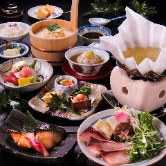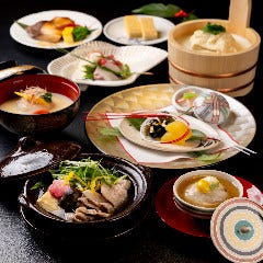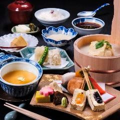 季節の美味を盛り込んだ京懐石をご用意しております。その時の美味しい旬食材を楽しんでいただきたく、内容は毎月変更。自家製のゆば桶や豆腐、京野菜など、地場の食材もふんだんに、器に彩りました。素材の粋を尽くした旬の美味で、皆様をおもてなしさせていただきます。京都の四季を感じる奥深い味わいをご堪能ください。