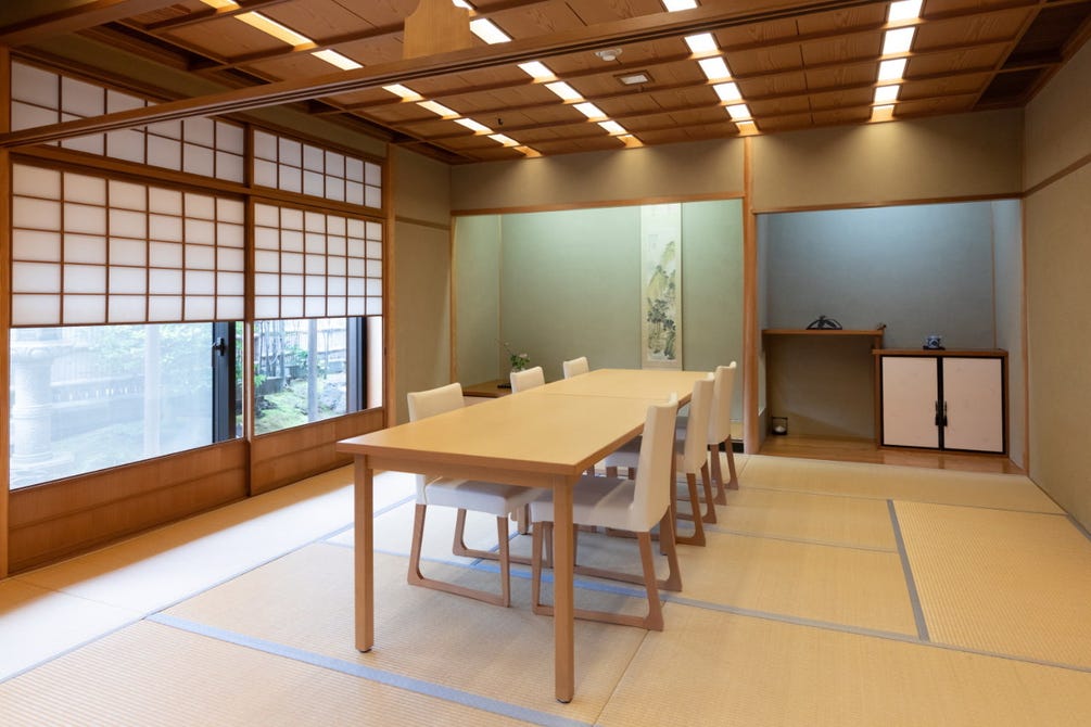 B1Fから2Fまで、大小様々な個室をご用意しております。上品な和のしつらえで、特別な日のお食事やおもてなしの席にふさわしい空間。お座敷でもテーブルと椅子席のスタイルを基本としていますので、お子様からご年配の方まで世代を問わずご利用いただけます。ご予約の際は人数のほか、お食事のご用途もお聞かせください。