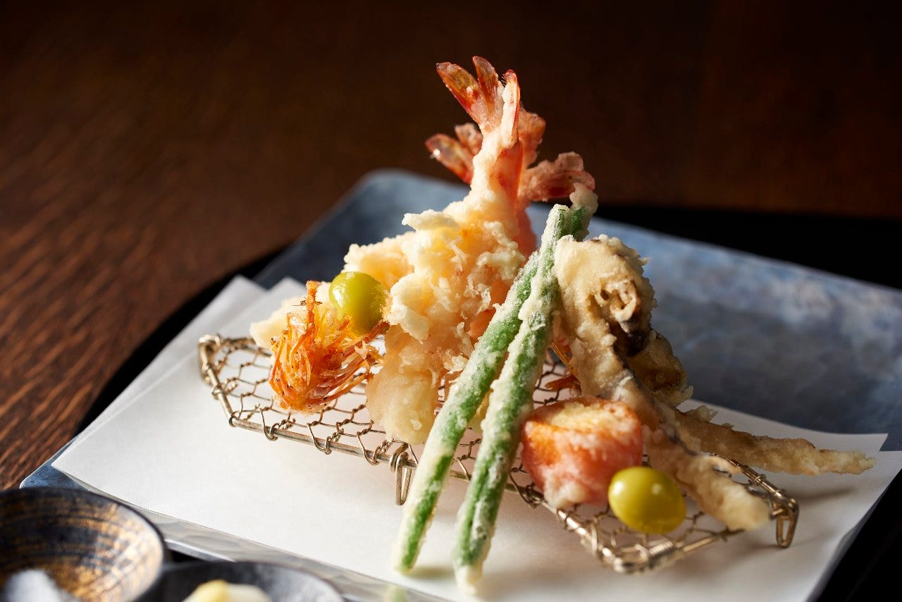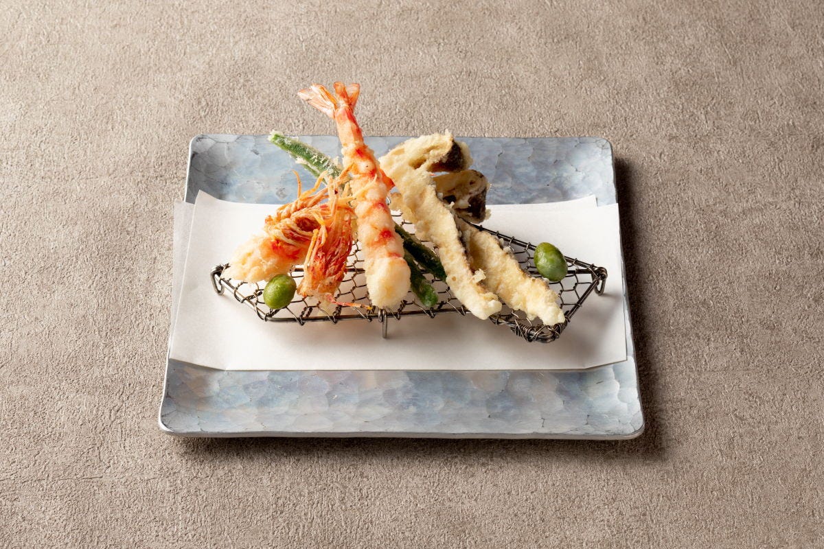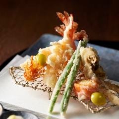 【手をけ弁当と贅沢な一皿】車海老と季節野菜の天婦羅※内容は季節により少し替わります。