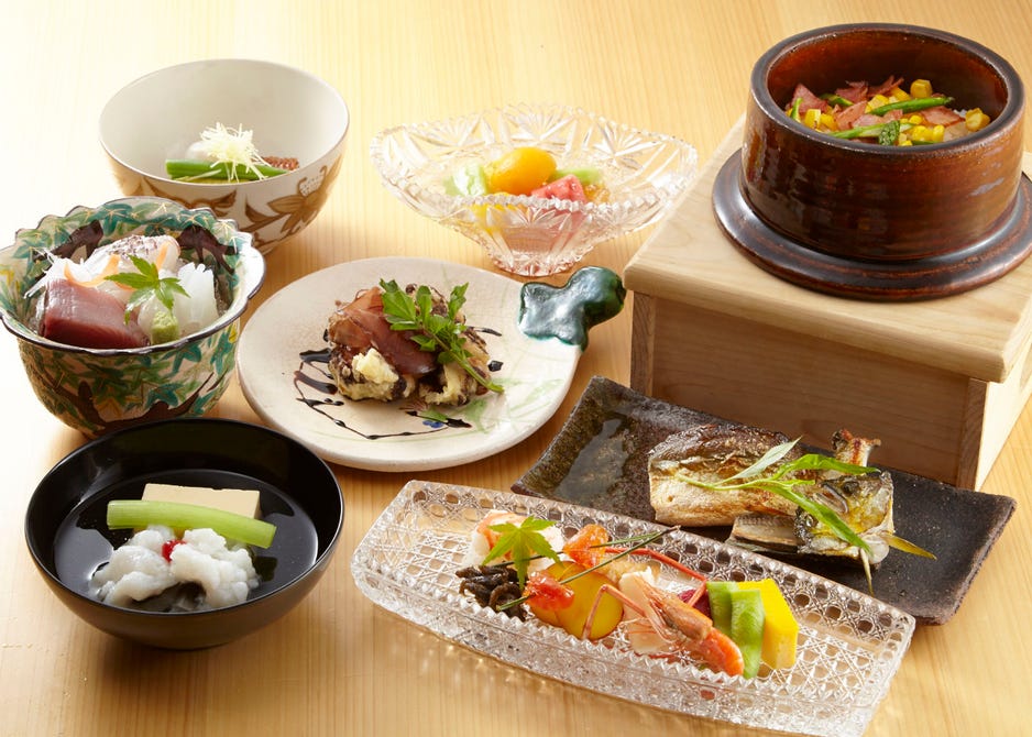 めぐる季節の豊かな食材を使用。魚などはその時々で質の良いものを仕入れております。料理は会席コースでご提供しており、一ヶ月毎に変わる季節を感じる内容となっております。