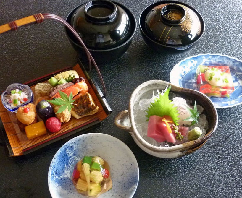 先付から水物まで、季節の移ろいを表現した会席コース。美しい器との調和も楽しみの一つ。目でも舌でも楽しめる、日本料理の神髄をご堪能いただけます。