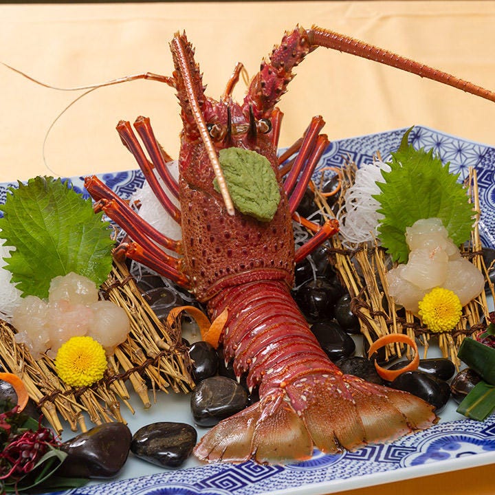 伊勢海老&国産牛を堪能【喝采(かっさい)】伊勢海老の活造り・焼き物・牛フィレ石板焼きを含む全12品