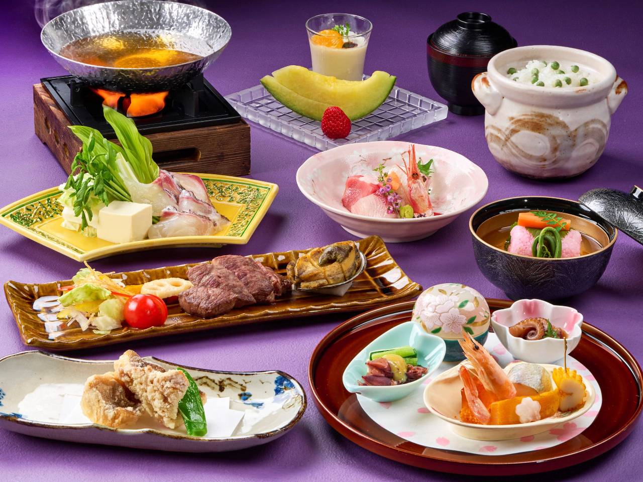 国産牛(ロース)と蝦夷鮑和風ステーキ 焼野菜 サラダ