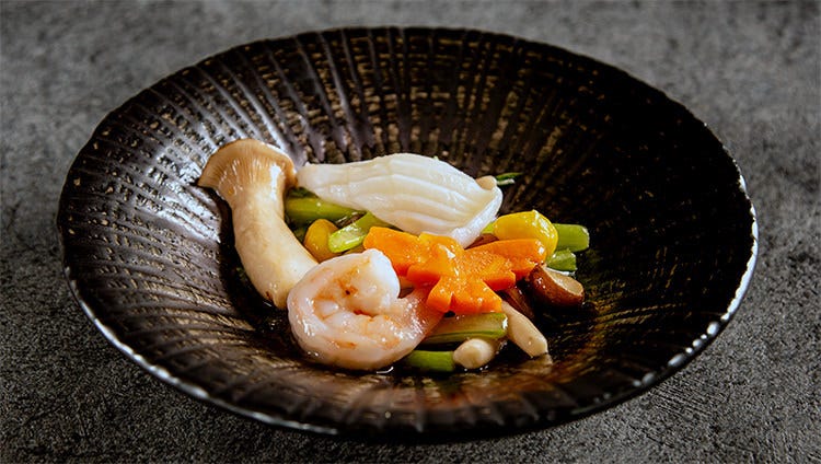 ■アオリイカと大海老の季節野菜炒め