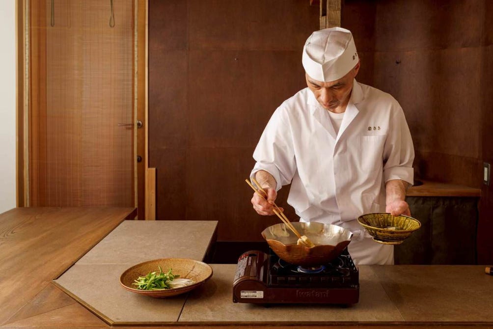 京都の老舗旅館や有名料亭で修業を積んだ店主が、腕を振るう逸品の数々。京野菜や近海天然鮮魚をはじめ、厳選した旬食材が織り成す端正な味わいが評判を呼ぶ。「出来立てを味わってほしい」という思いから、「焚合」ではなく、鍋物を目前で取り分けるサービスも。同じ料理を出さないという拘りも魅力。
