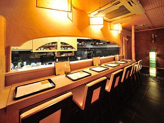 店主の仕事を目前に眺めるカウンター席。煮立て、揚げ、捌くといった手元に息を呑み、端正に飾り盛る器に思わず笑みがこぼれる…。美食家たちの特等席です。