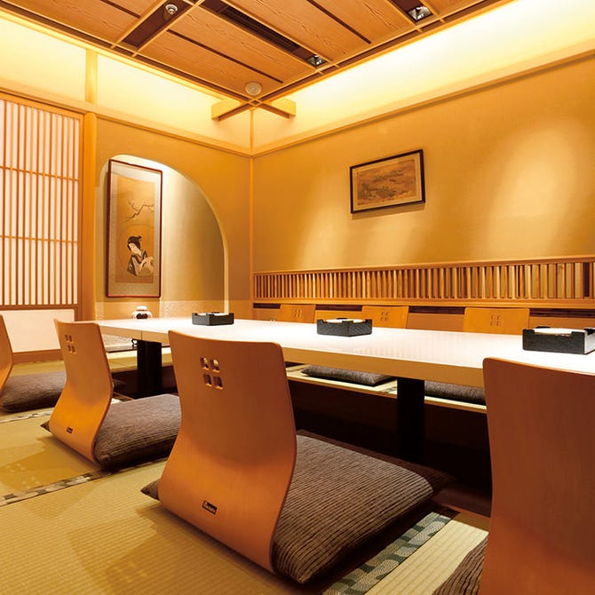ご利用シーンや人数に合わせて、用途に合ったお席へご案内。大小様々な個室やカウンター席をご用意しております。大切な方とのお食事に相応しい、日本らしさを随所に感じられる空間です。お料理のみならず空間でも贅沢な時間を演出いたします。50名様以上であればお店を貸切にすることも可能です。お気軽にご相談ください。