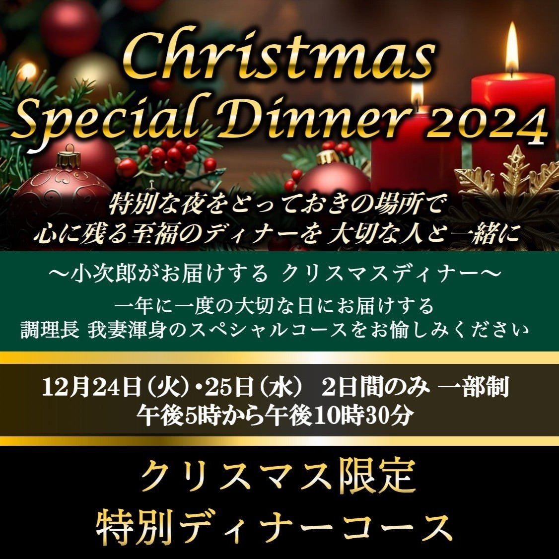 ★12月24日・25日限定★クリスマス限定スペシャルディナー2025♪『特選仙台牛コース 』22,000円(税サ込)