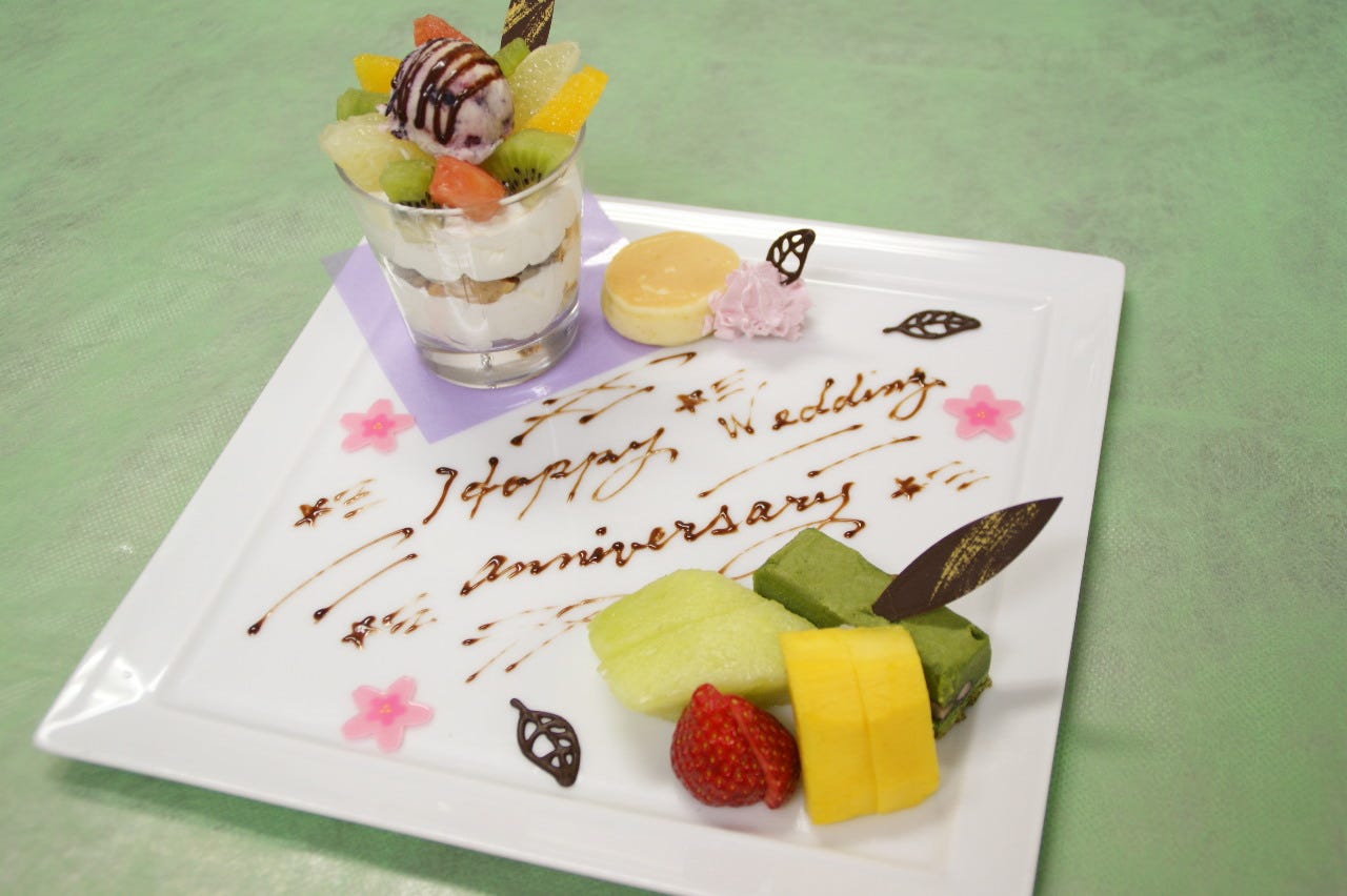 お好みのメッセージ付きアニバーサリーデザートプレート(グループで1枚のご用意)