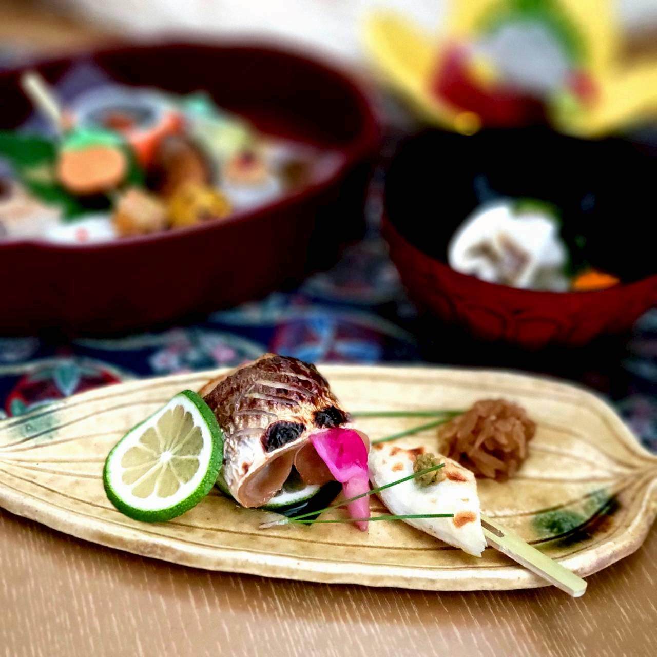 子持ち鮎甘露煮 衣かつぎ田楽焼き 菊大根