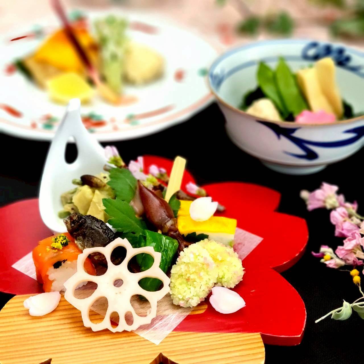 白身 椎茸 百合根 桜の花・葉 五色霰 もぐさ生姜