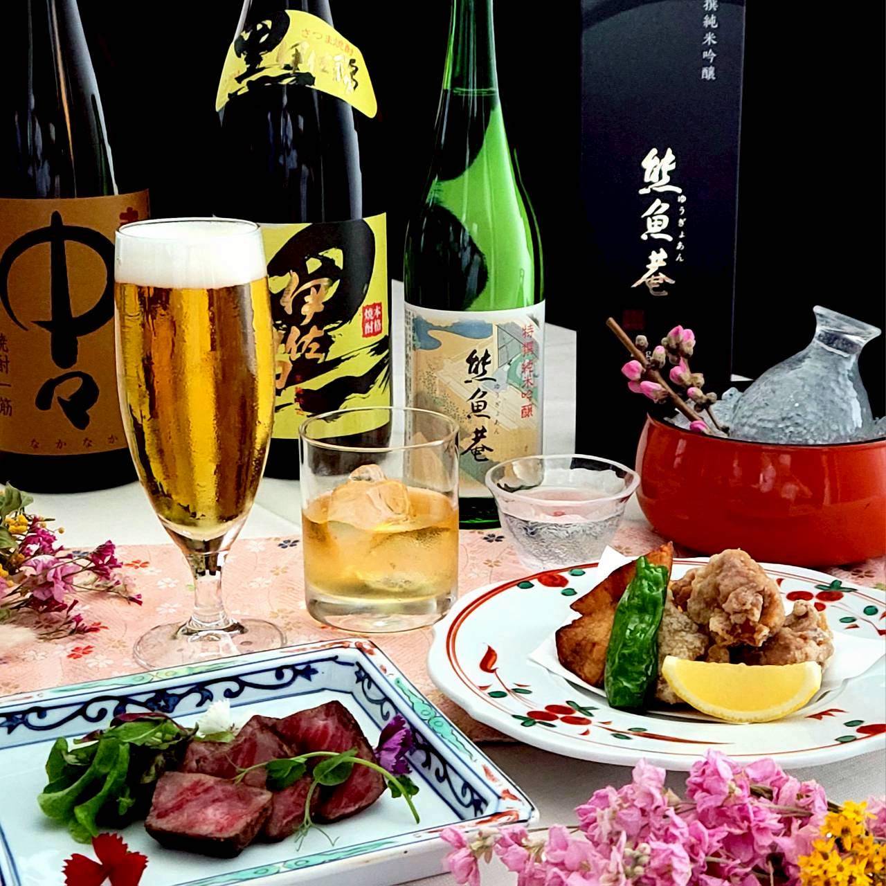 - 飲み放題【90分】生ビール、日本酒、ウイスキーハイボール、焼酎(麦、芋)、ウーロン茶、オレンジジュース付き