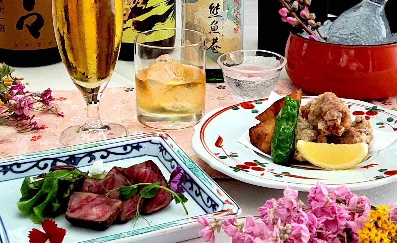 - 飲み放題【90分】生ビール、日本酒、ウイスキーハイボール、焼酎(麦、芋)、ウーロン茶、オレンジジュース付き