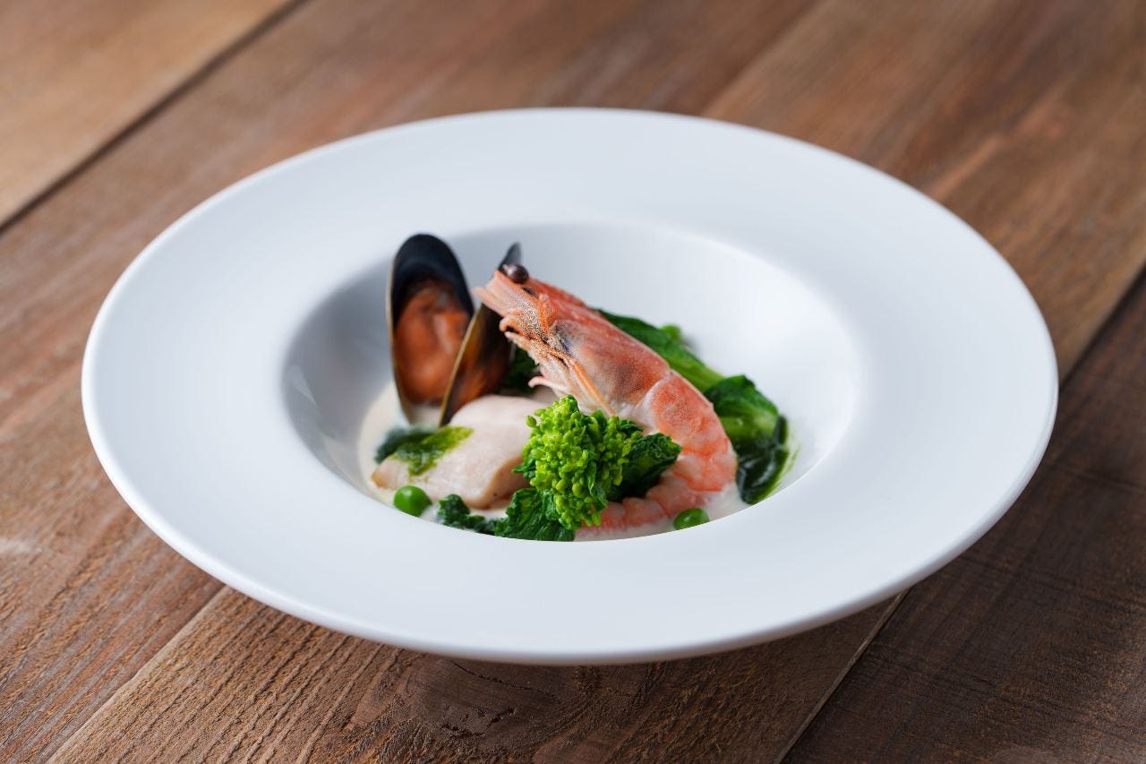 1. 白身魚と有頭エビのポワレ ナージュソース クレソンのピューレ ・・・3,800 円